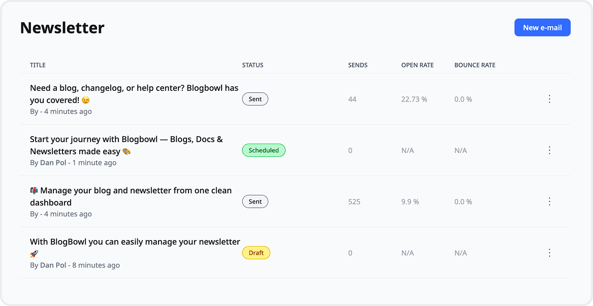 Track open rates, click rates, bounce rates, and more for your newsletters.