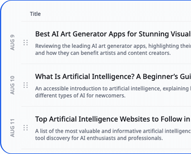 Our AI scans your niche, competitors, and audience to uncover hidden ranking opportunities.